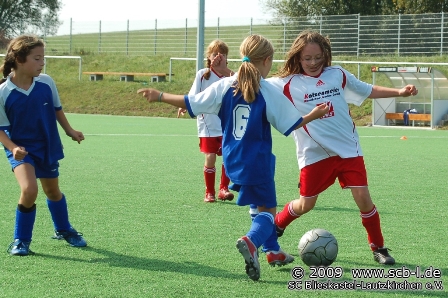 In der dritten Partie traf man auf die DJK St. Ingbert, die wie schon vergangene Woche D-Jugendliche in ihrem Kader hatte und deswegen außer Wertung geführt werden muss. Der SC erarbeitete sich zahlreiche Chancen, nutze diese aber nicht und so stand am Ende ein für die DJK doch glückliches 0:0-Unentschieden. Im letzten Spiel des Tages traf man auf die zweite Mannschaft der SG Medelsheim und nun mussten die SC-Mädels aufgrund der Spätsommerhitze etwas abreißen lassen: 3:0 hieß es am Ende, doch auch im letzten Spiel wurde aufopferungsvoll gekämpft, sodass Blieskastel noch einige Chancen der SG vereiteln konnte.