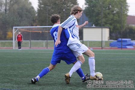 Im Heimspiel gegen den SV Schwarzenbach waren es von der ersten Minute an die Gäste, die das Spiel bestimmte. Schwarzenbach kontrollierte das Spiel und der Defensive SC konnte kaum einmal für Entlastung sorgen. Lediglich Torchancen waren zunächst Mangelware. Dann aber war es der SV, der das Gehäuse von SC-Schlussmann Matthias Schößer immer mehr unter Beschuss nahm, während Blieskastel nur ein einziges Mal durch Baier gefährlich vor das Tor des Gegners kam. So war es verdient, als Werner Heiler nach 19 Minuten aus 16 Metern mit einem platzierten Schuss das verdiente 1:0 erzielte. Blieskastel blieb die Antwort auf den Rückschlag schuldig und igelte sich weiter ohne eigene Offensivaktionen in der Defensive ein. Das Aufbauspiel des SC wurde von den Gästen zumeist schon im Keim erstickt. In der 33. Minute dann eine Vorentscheidung, als eine Freistoßflanke in den SC 16er segelt und Blieskastel das 2:0 durch ein Eigentor selbst besorgt. Nach dem 2:0 war der SC zwar bemüht selbst offensiv tätig zu werden scheiterte aber in seinen Bemühungen. So blieb es zur Pause bei der hochverdienten 2:0-Führung für die Gäste.