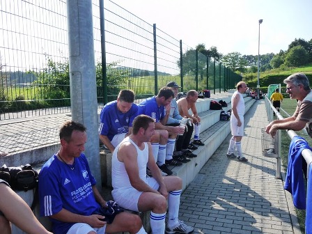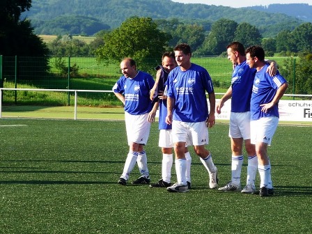 Am vergangenen Samstag war unsere AH ins hessische Lörzenbach zum Kleinfeldturnier gereist und diesmal wollte man es besser als vor zwei Jahren machen, als man am Ende des Turniers sang- und klanglos auf dem letzten Platz landete. Nach einem kurzen Abstecher ins Hotel fand man sich um 15:30 Uhr in Lörzenbach ein und von den Namen her hatte man eine gute Truppe mitgebracht. Mit Hans Weibel als Coach hatte man einen der besten Stürmer wenn nicht sogar den besten der 80er und 90er Jahre aus dem Bliestal dabei und der konnte sich in der Anfangsphase des Turniers mehr aufregen als Erich Heisel in seinen besten Jahren. Kurz und bündig es lief spielerisch recht wenig zusammen aber trotzdem reichte es mit wenig Aufwand in den ersten beiden Spielen je zu einem 1:0-Sieg. Also war das Halbfibale schon mal erreicht und nun wollte man auch Gruppensieger werden. Zu Beginn sah auch alles gut aus und man ging früh mit 1:0 in Führung. In der Folgezeit ließ man beste Chancen auf eine höhere Führung liegen und so musste man in der letzten Spielminute noch den Ausgleich hinnehmen. Somit war der erst Platz flöten und der Gegner im Halbfinale hieß Heiligkreutz Steinach und diese Truppe brachte es in der Vorrunde immerhin auf 9 Punkte und 11:1 Tore in drei Spielen. Man war also auf Seiten des SCB gewarnt.