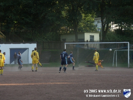 Eine Viertelstunde blieb dem SC nun um zumindest die Verlängerung zu erzwingen. Mittlerweile waren auch Matthias Schößer und Dirk Schreiner für Michael Pulver und Sven Sandmeyer im Spiel. Erstgenannter hatte in der 80. Minute dann auch die Riesenchance zum Ausgleich, nachdem die Hereingabe von Peter Pusse ihm vor den Fuß viel. Auch Alex Hodel hätte das Ruder noch mal herumreißen können, scheiterte aber am SV-Keeper. Heinitz hingegen stellte sich nicht nur hinten rein, sondern blieb auch im Angriff gefährlich: Ein weiteres Mal erklang der Aluminiumsound und auch ein Elfmeter blieb dem SV verwehrt. Den Schlusspunkt setzte Peter Pusse, doch sein Schuss flog am Tor vorbei, wie 60 Minuten des Spiels am SCB.