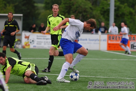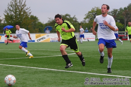 Ein Gewitter zog in der Pause über Biesingen auf und sorgte zunächst für eine 30-minütige Spielunterbrechung, ehe Schiedsrichter Sebastian Schmidt sich entschloss die Partie fortzusetzen. Bei strömendem Regen ging es weiter und nach einem Gewühl nach einem Eckball war es SC-Kapitän Peterr Pusse, der den Ball zum 2:0 in die Maschen wuchtete. Blitz und Donner sorgten aber wenig später für den endgültigen Spielabbruch und brachten den SC um eine gute Ausgangsposition.