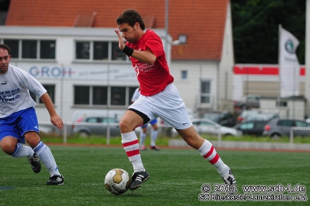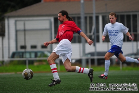 Das Heimspiel gegen das Spitzenspiel aus St. Ingbert begann für die Hausherren aus Blieskastel-Lautzkirchen erneut mit einem frühen Schock, als Christian Müller schon nach sechs gespielten Minuten den Platz mit einer Platzwunde verlassen musste und durch Jan Scheller ersetzt wurde. In der Folge entwickelte sich eine ereignisreiche Partie, in der beide Defensivreihen dem Gegner Chancen ermöglichten. So war nach 18 Minuten ein SC-Angriff nur durch ein Foul von DJK-Schlussmann Johannes Tabellion im Strafraum zu stoppen. Die logische Konsequenz war ein Foulelfmeter für den SC, den Peter Pusse souverän zur SC-Führung verwandelte. Nur wenige Minuten später forderte die DJK ebenfalls einen Elfmeter, ehe der SC durch einen Gentes-Weitschuss für Gefahr sorgte. Auch die DJK lauerte aber auf ihre Chance und so war es ein schnell vorgetragener Angriff, durch den Ex-DJK-Coach Mathias Moritz freigespielt wird, der im Eins-gegen-Eins gegen SC-Schlussmann Felix Bastian die Oberhand behält und zum Ausgleich für die DJK einnetzt. Nur Minuten später war es eine Hubertus-Flanke, die Christian Scheerer nicht im Tor unterbringt sondern über das Gehäuse setzt. Auch unmittelbar vor dem Seitenwechsel musste sich Bastian beweisen, als er einen Güngerich-Torschuss pariert, ehe Patrick Stumpf im Gegenzug das DJK-Gehäuse verfehlt. So blieb es bis zum Seitenwechsel beim 1:1-Remis.