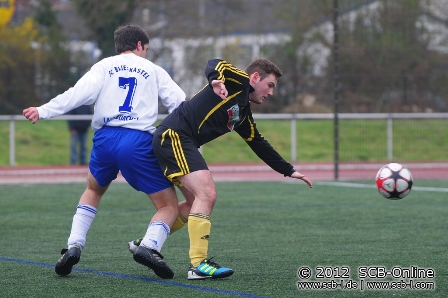 In Blieskastel-Lautzkirchen gab es an diesem Wochenende im Abstiegs-Duell zwischen dem SC und dem Tabellenschlusslicht der SVG Bebelsheim-Wittersheim ein nervöses Spiel beider Teams mit unzähligen Abspielfehlern zu sehen. Die Partie lebte ausschließlich von der Brisanz im Abstiegskampf, hatte aber fußballerisch nur ganz wenig zu bieten. Auf der einen Seite sorgte ein stumpf-Weitschuss für Gefahr, wenn auf der Gegenseite der SC mit einigen Abstimmungsfehlern in der Defensive zu Chancen einlud. Erst im Schlussdrittel der ersten Hälfte gab es Chancen zu sehen, als zunächst Gentes auf Moschel legte, der aber verpasst und ein Stumpf-Freitsoß an den Pfosten des Gehäuses von SVG-Keeper Eric Lonsdorf landet, ehe die SVG für Unruhe im SC-Strafraum sorgte und die Hausherren die Gäste zu einem Konster einluden, an dessen Ende Kobeluhn im SC-Tor retten muss. Benedikt Klein konnte beim anschließenden Eckball einen Kopfball nicht im SC-Tor unterbringen. Bis zur Pause blieb es in einem schwachen Spiel bei einem torlosen Remis.