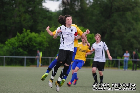 Rund 150 Zuschauer hatten an diesem Mittwoch den Weg nach Bliesmengen-Bolchen gefunden um das Entscheidungsspiel um den Titel in der Gruppe 1 der A-Jugenden zwischen den Sportfreunden aus Reinheim, die ihre Mannschaft aus der Kreisliga in der untersten Gruppe geparkt hatten und der SG SC Blieskastel-Lautzkirchen / SV Kirkel, der seinerseits den Kreilsiga-Aufstieg vor der Saison knapp verpasste zu sehen. Gleich von Beginn an waren es die Sportfreunde aus Reinheim die das Zepter des Handels übernahmen und die SG in der Anfangsphase in die Defensive drängten. So war es nicht unverdient, als Tim Schumacher nach 10 Minuten zur frühen Reinheimer Führung einnetzte. Es sah so aus, als könne Reinheim wie schon bei den Rundenspielen die Partie früh entscheiden, dann aber kamen die SGler immer besser ins Spiel, ehe die Partie nach 25 Minuten vollends gekippt war: Die SGler hatten nun mehr vom Spiel, drängten Reinheim in die Defensive und ließen kaum Chancen zu. Die SG hatte nun die Großchancen zum Ausgleich, als zunächst Christian Kempf nach 34 Minuten den Ball an die Latte knallte, ehe Kempf nur Minuten später das Tor nur knapp verfehlte. Bis zur Pause blieb es aber bei der knappen SFR-Führung.