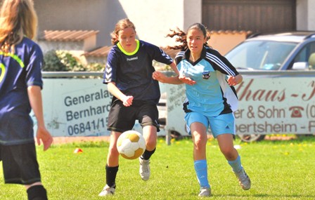 Heute wurden unseren D-Mädchen eine besondere Ehre zuteil, denn man durfte in einem Freundschaftsspiel gegen die Europaauswahl der USA in Hütschenhausen antretten. Da die USA nur im 9er Feld spielt, durften die SClerinnen die drei jüngsten Spielerinnen der C-Mädchen mit auflaufen lassen. In den ersten Minuten merkte man, dass die Mädels noch etwas unsicher auf dem großen Fald waren und das man mit dieser Aufstellung noch nie gespielt hatte. Wie befürchtet war die USA sehr spielstark und stellte unsere Abwehr vor eine große Herausforderung. Unsere Mädels kamen aber immer besser ins Spiel, man gewöhnte sich an das größere Feld und an die Anzahl der Spielerinnen und konnte so dem Druck des starken Gegners stand halten. Auch unsere Torfrau war von Anpfiff an hell wach und konnte ein ums ander Mal Großchancen des Gegners vereiteln, so ging man mit einem glücklichen aber nicht unverdienten 0:0 in die Pause. In dieser sprach man einige kleinere Stellungsfehler an, die aber nicht so gravierend waren, um dem Gegner nicht so viele Torgelegenheiten zu bieten. Im Gegenzug wollten die SClerinnen aber auch selber Druck aufbauen, um die eine oder andere Chance selbst herausspielen zu können.