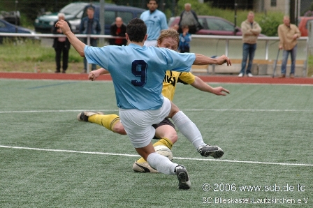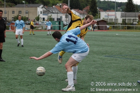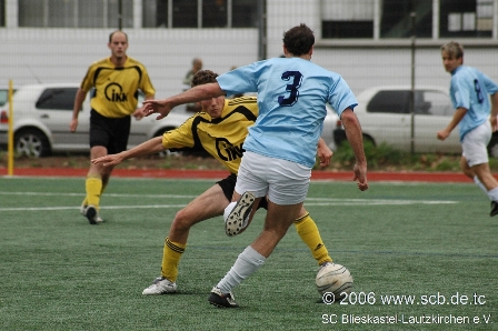 Nach und nach erwachte dann der heimische SC und setzte durch einen Distanzschuss von Simon Kiefer ein erstes Offensivzeichen. In der Offensive lief der Ball nun besser, wollte man die ganze Zeit noch mit dem Kopf durch die Wand. Als Folge ergab sich zunächst eine Chance für Dirk Dattge, der aus der Drehung nur knapp am langen Eck vorbeischoss. Kurz darauf war es dann Djabba, der sich einmal durch die Mitte durchsetzen konnte, aber nur den Pfosten traf. Eine Viertelstunde vor Schluss verwertete Olli ein Zuspiel von Djabba zum mittlerweile verdienten Ausgleich. Erleichterung machte sich breit. Doch die legte sich gerade einmal vier Minuten später wieder. Der SCB versuchte nun mit Gewalt den Führungstreffer zu erzielen, vernachlässigte dabei jedoch die Defensivarbeit. Reinheim lauerte schon die ganze Zeit auf eine Konterchance, die nun gekommen war. Zwar konnte Robert Harder den Ball zunächst noch aus dem Eck fischen, war beim Abstaubertor von Heiko Ruth allerdings machtlos.