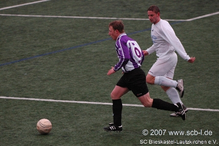 Nachdem der SCB in der Vorwoche gegen den Verbandsligazweiten aus Auersmacher (13-5-3, +20 Tore) trotz 0:8-Niederlage eine respektable Leistung ablieferte, wollte man an diesem Sonntag gegen den Zweitletzten der Verbandsliga Saar aus Jägersburg (5-4-12, -30 Tore) natürlich an diese Leistung anknüpfen. Der SCB, der fast in Bestbesetzung antrat, hatte auch die erste Möglichkeit in der Partie, als sich Simon Kiefer unmittelbar nach dem Anstoß auf links durchsetzen konnte. Den ersten Treffer der Partie erzielte dann aber trotzdem der Favorit: Ein Freistoß aus 20 Metern landete mit freundlicher Unterstützung der regenassen Kunstrasens in der kurzen Ecke des SCB-Gehäuses. Zunächst schien Blieskastel vom frühen Rückstand sichtlich geschockt, aber nach und nach merket der SCB, dass man sich vorm scheinbar übermächtigen Verbandsligisten nicht zu fürchten braucht. Jägersburg aggierte oft ideenlos und fand nur selten ein Mittel gegen die gut geordnete SCB-Defensive.