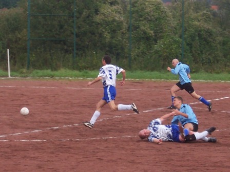 Nur fünf Minuten später ließ Butschi zwei Spieler am Strafraum aussteigen und vollendete selbst per Flachschuss ins lange Eck zum zwischenzeitlich verdienten 0:1. Kurz darauf spazierte Sven Sandmeier vom eigenen Sechzehner bis 20m vors gegnerische Tor, wo man ihn unsanft bremste. Der Schiri entschied auf weiterspielen, was dazu führte, dass sich Kapitän Butschi lautstark für die gelbe Karte bewarb (und diese auch erhielt). Der SCB dominierte nun die Partie und baute die Führung weiter aus. Der oft gefoulte Horst Wenzel versenkte den Ball volley aus spitzem Winkel über den Torwart und erzielte damit den 0:2 Pausenstand.