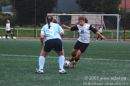 Auch gegen den Tabellnführer aus Dirmingen zeigten unsere Mädels, was in ihnen steckt. Von der ersten Minute an entwickelte sich an der Florianstraße eine ausgeglichene Partie, in der beide Mannschaften nichts zu verschenken hatte und um jeden Ball kämpften. Hochkarätige Tormöglichkeiten gab es trotz zweier starken Defensivreihen ebenfalls auf beiden Seiten und das Glück war zunächst auf Seiten der Gäste, als ein gefährlicher Schuss des SC nur am Aluminium landetet. In der Folgezeit kam dann der Spitzenreiter vom SV besser in die Partie und ein Verlegenheitsschuss, der wohl gar nicht aufs Tor kommen sollte, senkte sich zum 1:0 hinter der sonst starken Torfrau Carla Martin unglücklich ins Netz. Der SC ließ sich aber durch das Gegentor nicht aus der Ruhe bringen, hatte aber Probleme, gegen die gut gestaffelte Gäastabwehr zu Tormöglichkeiten zu kommen. So blieb es zur Paus beim 0:1.