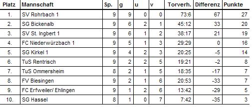 Zum Abschluss der Qualifikationsrunde gab es für unsere D11 eine Niederlage beim Gastspiel in Niederwürzbach. Schon zur Pause musste der SC nach einer durchwachsenen ersten Hälfte mit einem 0:2 Rückstand den Gang in die Kabinen antreten. Nach der Pause kam der SC dann besser in die Partie, mehr als ein Tor durch Lars Ulrich sollte aber nicht herausspringen. Zwar spielte der SC zumindest in Durchgang zweigut mit, dennoch sollte es am Ende nicht für einen Punkt oder gar den Sieg reichen und der SC musste die dritte Saisonniederlage einstecken. Damit muss der SC den vierten Tabellenplatz an den Gegner vom FC Niederwürzbach abgeben. In der Abschlusstabelle belegt man nun mit 14 Punkten aus 9 Spielen bei 20:25 Toren einen guten fünften Tabellenplatz.