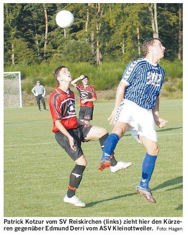 ASV Kleinottweiler - SV Reiskirchen 6:7 nach Elfmeterschießen (1:1/0:0). Nach torloser erster Halbzeit ohne Höhepunkte ging Reiskirchen durch einen Kopfball von Matheus Golomb in Führung. Sinisa Popadic glich aus. Die ASV vergab in der Verlängerung durch Alexander Metz Großchancen, ehe sich der SVR im Elfmeterroulette behauptete.