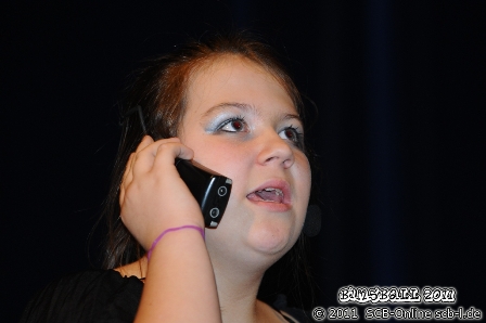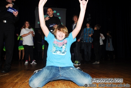 Wie schon im letzten Jahr war es eine Fotoshow, die den Bimsball 2011 eröffnete. Über die Großleinwand flimmerten Fotos der vielen Bimsball-Akeure und Beteiligten von den Proben und Vorbereitungen für das Großereignis und wieder einmal wurde einem bewusst, welch große Arbeit in jedem Jahr hinter der Realisierung des Bimsball steckte und wie viele Menschen an dessen Gelingen beteiligt waren. Die Moderatoren der großen Show Thomas Kiefer und Matthias Schößer übernahmen nun die Bühne und eröffneten die Show mit einem sehenswerten Opener in dem sich musikalisches mit großem Sport mischte. Bei der Vorbereitung zum "Kampf des Jahres" zwischen den beiden Moderatoren entschließen sich beide die Musik statt den Fäusten sprechen zu lassen und entführen die Bimsball-Fans in das Reich der Filmmusik: "Dirty Dancing", "Der König der Löwen", "The Rocky Horror picture show" und "Flashdance" sorgen für einen musikalischen Start ins den Bimsball und hatten den einen oder anderen Augenschmaus zu bieten. Ein gelungener Auftakt für den Abend, der die Fans in der Bliesgau-Festhalle noch sehr lange in seinen Bann ziehen sollte. Umso größer also die Vorfreude auf den Startschuss, der nur wenig später offiziell erfolgen werden sollte. Der 1. Vorsitzende des SC Blieskastel-Lautzkirchen Günter Pusse ergriff das Wort, blickte zufrieden zurück auf ein gelungenes Jubiläumsjahr und eröffnete den Bimsball 2011 offiziell. Es folgte der erste Teil eines insgesamt sechsteiligen Erziehungsratgebers, bei dem Jugendspieler des SC Blieskastel-Lautzkirchen über „Das Altern der Eltern“, „Argumentation“, „Peinlich“, „Ein Mädchen wird zur Frau“, „Fußballkariere“ und „Telefonverhalten“ die bekanntesten Missverständnisse im Zusammenleben mehrerer Generationen durchlebten. Julia Steinmann, Cedric Kiefer, Robin Klein, Tim Collet, Marius Schwartz sowie die das verzweifelte Elternteil Kurt Collet und Erzählerin Yvonne Collet ernteten in allen sechs Teilen ihres Programms verdientermaßen großen Applaus.