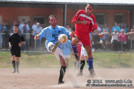 In Ommersheim war der SC trotz einiger kurzfristiger Ausfälle zunächst das spielbestimmende Team und die SC-Fans hatten in den ersten 25 Minuten gleich zwei Mal den Torschrei schon auf den Lippen: Zunächst scheiterte Christian Müller am Aluminium, ehe SC-Angreifer Flavio Baier bei einem Drehschuss im TuS-Strafraum alles richtig macht, dann aber beim Torabschluss in Rücklage gerät und verzieht. Die Partie nahm nun Fahrt auf und auch Ommersheim kam zu ersten Chancen. Beide Teams schenkten sich nichts, auf einem holprigen und staubenden Hartplatz zeigten sie aber auch nur selten guten Fußball. Vielmehr prägten viele hohe Bälle die Partie. Die Schlussphase des ersten Durchgangs gehörte den Hausherren, die sich aber auch in dieser Phase nur selten gefährlich in den SC-Strafraum kombinierten. So blieb es bis zum Seitenwechsel bei ein torlosen Remis und die Fußballfans des SC waren bis dahin zufrieden, ließen die Gäste doch gegen das zweitbeste Rückrunden Team kaum Chancen zu und hatten selbst zwei Riesenchancen zur Führung.