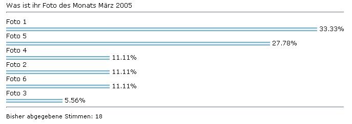 Hier das Endergebnis zur Wahl zum Foto des Monats März: