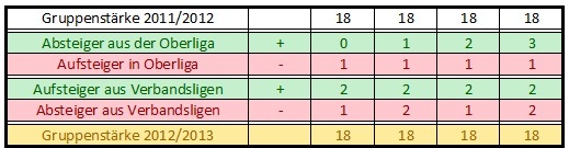 Grundsätzliches: Die Verbandsliga wird zur Saison 2012/2013 gemäß eine Klassenpyramide zweigleisig, beide Verbandsligen haben jeweils 16 Mannschaften.