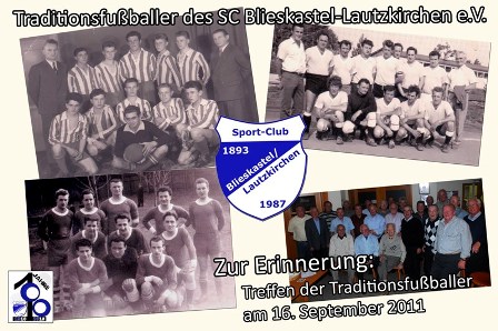 Es gehört in den Terminkalender vieler SCler wie Weihnachten und Neujahr und ist aus dem Jahresablauf zahlreicher SCler nur ganz schwer wegzudenken: Das Treffen der SC-Ehemaligen, der Traditionsfußballer stand auch im Jahr 2011 auf dem Programm und fesselte ganze Fußballergenerationen im Sportheim des SC Blieskastel-Lautzkirchen. Was die Nachkriegsfußballer um den verstorbenen Fritz Schwarz, die Fußballer jener Elf, die ihrer Zeit unmittelbar nach dem zweiten Weltkrieg zum Non-Plus-Ultra im Saar-Fußball gehörten, vor Jahrzehnten ins Leben gerufen hatten ist nun ein Treffen, das längst um viele andere SC-Generationen ergänzt wurde. Aber auch die Gründerväter dieses alljährlichen Treffens entsenden mit Waldemar Stolz, Reinhold Kolb und Kurt Becker drei SC-Idole der längst vergangenen Zeit auf das Treffen der Traditionsfußballer.