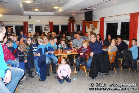 Die Weihnachtszeit hat für die Jugendspieler beim SC Blieskastel-Lautzkirchen Jahr für Jahr etwas ganz Besonderes zu bieten, auf das sich Spieler wie Eltern schon Wochen zuvor freuen: Die Jugendweihnachtsfeiern des SC-Nachwuchses stehen auf dem Terminkalender und die haben traditionell weit mehr zu bieten als lange Reden und Langeweile, denn beim Jahresabschluss lassen sich die SCler nicht lumpen, auch weil man bei den zahlreichen Jugendmannschaften ein breites Spektrum an Events zu Weihnachten zu bieten hatte. Schon vor einigen Wochen ging es los, als die B-Jugend der Trainer Rainer Hugo und Rainer Wettmann bei einem Spaghettiessen im Sportheim und einem lockeren Zusammensein die Weihnachtsfeiersaison eröffneten. Auch die von Marcel Zeuschner trainierten B-Mädchen feierten ihren Jahresabschluss schon vor einigen Tagen. An diesem letzten Wochenende vor dem Heiligen Abend ging es dann im puncto Weihnachtsfeiern richtig los und zahlreiche Jahresabschlüsse standen auf dem vollen SC-Programm.
