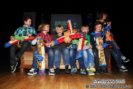 Mit kleinen Erziehungratgebern zwischen den einzelnen Beiträgen sorgten die jüngsten Akteure auch in diesem Jahr für Lacher. Ob Anrufbeantworter, Fernseher, Füße oder Hörvermögen. Zu jedem dieser Punkte hatten die Jüngsten Luca Rau, Kirk Rebmann, Thore Fries, Sebastian Greff, Moritz Hess, Luca Schulz und Tim Collet einen Ratschlag bereit. Eingeübt wurde das Ganze unter Leitung von Yvonne Collet und Bianca Fries. Auch die nächste Generation des SC hilft beim Bimsball tatkräftig mit.