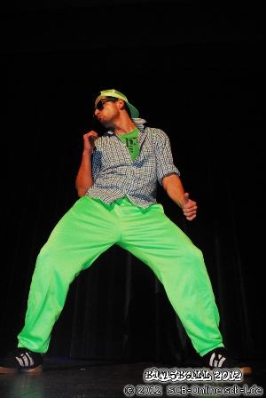 Danach sorgte Inka Rebmann, unterstützt von Kira Rebmann und Kurt Collet, mit akrobatischen und tänzerischen Elementen für viel Schwung. In der Bliesgau-Festhalle Weiter ging es mit einem Musikbeitrag, in dem Günter Pusse und Horst Klein die "Winterzeit" besangen. Natürlich durfte beim Bimsball 2012 auch der Wortwitz nicht zu kurz kommen. Und wer wäre im Saarland dafür besser prädestiniert als Heinz Becker? Schon im Herbst sorgte die Heinz-Becker-Nacht im Sportheim für Lacher, nun kam der Muster-Saarländer in die Bliesgau-Festhalle. Ausgefüllt wurde diese Rolle von Julia Steinmann, die nicht nur mit ihrer Art sondern auch mit ihrer Kostümierung an das Original erinnerte.