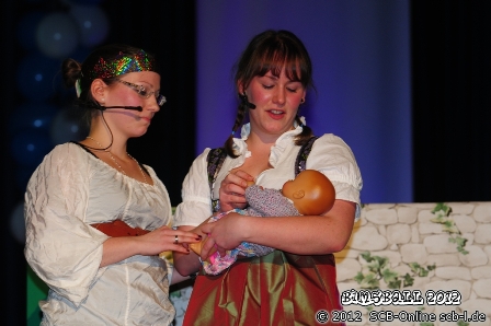 Wenn es um Trennung geht, ist dies meist schmerzhaft. Zumindest war es ein Brief und keine SMS, in den Matthias Schößer den Anwesenden Einblick in sein Gefühlsleben erlaubte. Die Melodie ließ den Klassiker "Senza una donna" erahnen, doch der Inhalt über Grammatik und richtige Zeichensetzung brachte die Zuschauer zum Schmunzeln. Wie in jedem guten Programm muss auch Zeit für Werbung sein. Dafür sorgte in diesem Jahr die Frauenabteilung des SC Blieskastel-Lautzkirchen. In ihrer Interpretation des Märchens "Schneewittchen" kamen nicht nur bisher unbekannte Szenen ans Tagelicht, sondern auch über 100 Werbenamen und -slogens, die mit viel Wortwitz in die Dialoge der Protagonisten eingearbeitet wurden. Die schusselige Königin (Katja von Gries) und ihre genervte Dienerin Polin Aris (Natascha von Gries) versuchten mit Hilfe des Jägermeisters (Jasmina Hiege) Schneekoppewittchen (Lena Dreckmann) zu töten. Doch diese fand dank dem Franziskaner-Mönch (Katharina Dreckmann) und dem Klosterfrau Melissengeist (Natascha von Gries) den Weg zu Prinz Ginger Ale (Katharina Dreckmann) wo sie geholfen wurde.