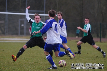 Der SV Blickweiler legte beim ersten Heimspiel des Jahres los wie die Feuerwehr und ging nach sechs Minuten durch Thorsten Kühnreich mit 1:0 Front, ehe Gökhan Cicekci die Führung nach 15 Minuten auf 2:0 ausbauen konnte. Der SVB ließ nicht locker und kam durch Winter-Rückkehrer Alexander Keller nach nur 18 Minuten sogar zum 3:0 traf. Michael Wosnitza war es, der in der 20. Minute den Torrausch des SV Blickweiler fortsetzen konnte und zum 4:0-Pausenstand traf. Auch nach dem Seitenwechsel war Blickweiler das treffsicherere Team und kam durch den zweiten Treffer von Gökhan Cicekci nach 75 Minuten zum 5:0, ehe Steve Holtz nach 80 Minuten das 5:1 erzielte und für Ergebniskosmetik aus SVR-Sicht sorgte. A-Jugendspieler Dennis Mauz war es , der in der 88. Minute den 6:1-Endstand markierte.