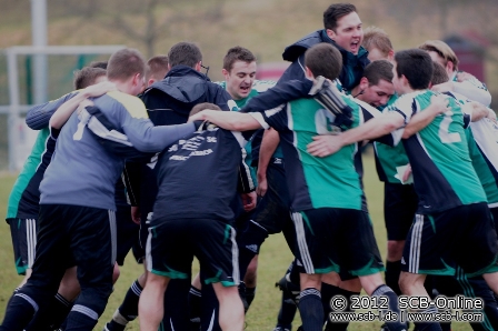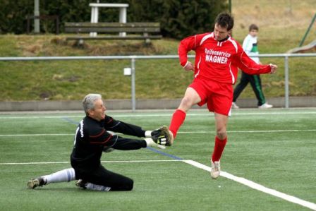 In Altheim lief für den SC schon vor dem Spiel nicht alles nach Plan, musste Coach Carlos Kropp neben David Klingen, Markus Grötsch und David Gentes kurzfristig auch noch Neuzugang Hubert Gärlipp ersetzen. Zu allem Überfluss musste auch SC-Verteidiger Tobias Schuler nach einem Pressschlag nach nur vier Minuten verletzt passen und wurde durch Routinier Steffen Noserke ersetzt. Zunächst hatten die Hausherren aus Altheim mehr vom Spiel und SC-Kepper Stefan Kobeluhn musste gleich mehrmals in höchster Not retten. Klaus Schunck war es, der nach 27 Minuten nur um Zentimeter verzog, Kobeluhn wäre in dieser Szene bereits geschlagen gewesen. Die SCler standen in dieser Phase weit von ihren Gegenspielern entfernt, kamen erst nach rund 30 Minuten besser in die Partie und sorgten gleich für einen Paukenschlag als Peter Pusse nur an den Pfosten köpfte. Nur Minuten später gab es aber Grund zum Jubeln, als Pascal Linn im Anschluss an eine SC-Ecke SVA-Keeper Oliver Meiser überwinden konnte und zur 1:0-SC-Führung traf. Nur 100 Sekunden später war es SC-Kapitän Peter Pusse, der Meiser zum 2:0 überlupft. Schiedsrichter Karl Klößner aus Homburg verwehrte dem Treffer aber zum Unverständnis der SCler die Anerkennung und traf damit eine wie sich herausstellen sollte folgenschwere Entscheidung. Die Schlussminuten des ersten Durchgangs gehörten den Hausherren, die durch Joschua Harz zunächst eine Chance in den Armen von Kobeluhn liegen ließen, dann war es aber ein langer Ball des SVA, bei dem sich die SCler selbst überrumpelten. Christian zog den Nutzen daraus und überspielte die SC-Defensive damit dem in dieser Situation chancenlosen Kobeluhn zum 1:1-Ausgleich und das Sekunden vor dem Pausenpfiff.