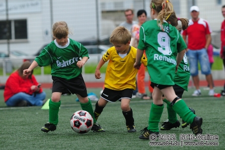 Weiter ging es mit neun G-Jugend-Teams: Nachdem die Spielerveinigung einöd-Ingweiler, wie schon zuvor die F-Jugend der SG Bruchhof Sanddorf nicht zum Turnier erschien gab es für die Fußballfans also ein spannendes Neunerturnier zu sehen und die Fans staunten nicht schlecht, als die Nachswuchskicker, die teilweise gerade einmal drei Lenze auf dem Buckel hatten und bei der EURO 2008 noch nichtmal geboren waren wundervollen Fußball zeigten und vor allem mit unglaublich viel Spaß zur Sache gingen. Am Ende gab es bei der G-Jugend nur Sieger und wie immer wurden beim SC keine Ergebnisse notiert und alle Teilnehmer mit dem Siegerpokal ausgezeichnet.