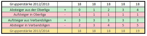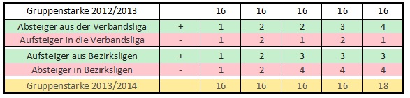 Im Zuge der Klassenreform wurden aus einer 18er-Verbandsligen zwei 16er-Klassen. Auch in der Verbandsliga gelten klare Vorgaben für den Aufstieg und auch den Abstieg: