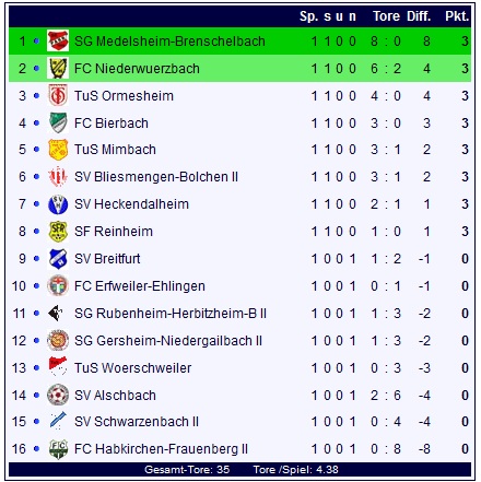 Am Ende gewinnt die SVB-Reserve ihren Saisonauftakt und steht auf Rang fünf der ersten Tabelle, währen die SG Gersheim-Niedergailbach II mit dem 11ten Platz Vorlieb nehmen muss.