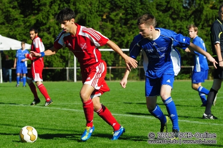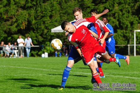 Auch im zweiten Durchgang das gleiche Bild: Beide Mannschaften schenkten sich nichts, zeigten aber nur selten Kombinationsfußball. Weiter hatte aber Blickweiler die größeren Chancen: Nach einem Patzer in der SC-Abwehr traf Jens Hilmer nach 51 Minuten nur den Pfosten, ehe Scheller gegen den nun stärker werdenden Bigvava auf der Linie klärt. Der SC zeigte sich erstmals im SVB-Strafraum, als Pusse nach 60 Minuten einem Sololauf keinen zwingenden Abschluss folgen ließ. Der SC kämpfte zwar weiter, dennoch tauchte Melori Bigvava nach 71 Minuten frei vor SC-Keeper Harder auf, der seiner Elf mit einem tollen Reflex das Remis rettete. Weiter hatten die Gäste gute Ansätze kamen aber nur allzu selten in Schussdistanz. Nach 75 Minuten dann durfte der SV Blickweiler jubeln: Melori Bigvava nimmt einen langen Ball mit einem Seitfallzieher und netzt zum 1:0-Führungstor für seine Elf ein. Der SC musste nun das Risiko erhöhen und hatte nun deutlich Übergewicht. Peter Pusse wurde nach 78 Minuten mit einem Weitschuss gefährlich, auf der Gegenseite war aber Bivava gegen die nun aufgerückte SC-Defensive zur Stelle und netzte nach 85 Minuten aus abseitsverdächtiger Position zur Entscheidung ein. Morris Agyei hatte auf der Gegenseite frei vor SVB-Keeper Eric Becker die Chance zum Anschlusstreffer, scheiterte aber einem guten Reflex des SVB-Schlussmanns. Blickweiler zeigte sich in einer ereignisreichen Schlussphase kaltschnäuziger und Bigvava bediente Özhan Cicekci zum 3:0-Endstand.