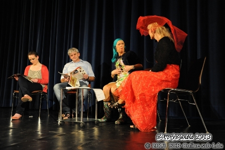 Einer der Höhepunkte des Abends sollte die Solo-Gesangseinlage von Hannah Dahlem sein, die mit zwei live gesungenen Nummern die Fans in der Bliesgau-Festhalle von den Sitzen riss. Mit gefühlvoll dargebotenen Hits wie „Someone Like You“ (Adele) und „Warwick Avenue“ (Duffy) brachte sie die Zuhörer in ihren Bann. Da durfte die Zugabe „Almost Lover“ (I Frenzy) natürlich nicht fehlen. Ein unglaublicher Auftritt eines jungen Gesangstalents! Es folgte der Auftritt einer neuen Abteilung des SC Blieskastel-Lautzkirchen: Unter der Leitung von Barbara Frey präsentierte die Zumba-Abteilung des SC Blieskastel-Lautzkirchen ihr Können: Esther Backes, Ramona Blatt, Susanne Blaumeiser, Bianca Derbolowsky, Trainerin Barbara Frey, Christina Greff, Anne Hartmann, Victoria Kleimann, Marion Klein, Inka Rebmann, Anne Reitnauer, Michaela Reitnauer, Christine Schiffler, Jennifer Schiffler, Daniela Schütt, Nina Schwerdt, Olga Solomartin und Michel Weingart präsentierten den staundenden Zuschauern Zumba vom Feinsten und machten mächtig Werbung für die all-mittwöchlichen Zumba-Stunden in der Bliesgau-Festhalle, ehe es Thomas Kiefer, Matthias Schößer, Lena Dreckmann und Gerhard Becker in eine lustige Szenerie verschlug: Beim postpsychologischen Dienst konnte Herr Rumsmeier (Gerhard Becker) einfach nicht zum Lächeln gebracht werden. Trotz aller Bemühungen der Psychologin (Lena Dreckmann) konnte er den Fall des Postmonopols nicht überwinden. Kundenfreundlichkeit?! Dazu kann er sich einfach nicht überwinden. Doch einen Umstand brachte ihn am Ende doch noch zum Lächeln: Der Feierabend!