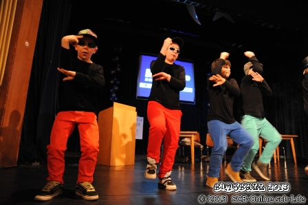 Für die ersten Lacher sorgten auch an diesem Bimsball-Abend die Nachwuchskicker des SC Sören Blatt, Tim Collet, Sebastian Greff, Moritz Hess, Joscha Hurth, Luca Rau, Kira Rebmann, Kirk Rebmann, Max Rebmann und Paul Rebmann mit den Sketchen der Schulklasse, die auch in diesem Jahr die Lacher der 250 Bimsball-Fans auf ihrer Seite hatten. 2013 gab es erstmals seit 2009 wieder eine Schulklasse im Programm, die sich hauptsächlich aus Spielern der E-Jugend zusammensetzte. Neben frechen Witzen und lustigen Pointen zeigten die Nachwuchskicker auch ihr tänzerisches Talent. Nachdem der Gong den Unterricht beendete wurde die Schule im „Gangnam Style“ verlassen. Einstudiert wurde der Beitag von Yvonne Collet, Inka Rebmann und Christine Rebmann. Den einen oder anderen Seitenhieb für die Anwesenden gab es auch in diesem Jahr erwartungsgemäß dazu, ehe sich der junge Bimsball-Nachwuchs unter tosendem Applaus verabschiedete.