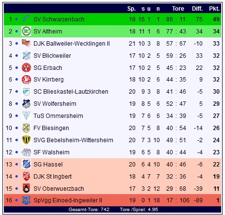 In der Tabelle der Bezirksliga Homburg kommt es natürlich nur zu wenigen Änderungen: Blickweiler schiebt sich auf Rang vier, Biesingen und Ommersheim verschaffen sich im Tabellenkeller Luft: