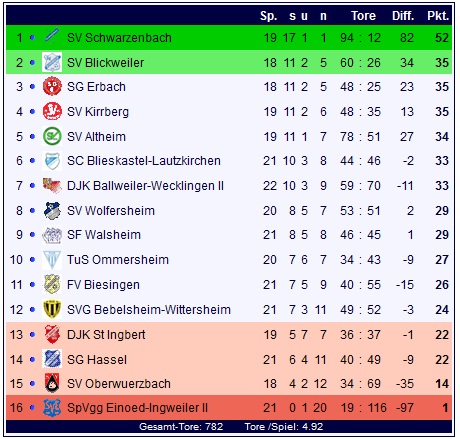 Durch den knappen Heimsieg kann sich der SV Blickweiler mit nunmehr 35 Punkten sogar bis auf Rang zwei der Tabelle nach vorne schieben. Die SVG Bebelsheim-Wittersheim rutscht mit 24 Punkten auf Rang 12 ab.