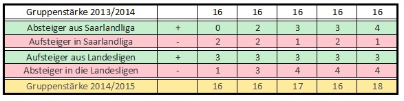Nun gelten für die einzelnen saarländischen Spielklassen wie immer gewisse Voraussetzungen aus denen sich die Anzahl der Auf- und Absteiger unter Zuhilfenahme der Umstände in den anderen Ligen errechnen lassen, dies sind im Einzelnen: