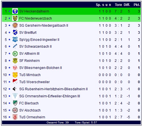 Auch die erste Tabelle des Jahres gibt es zu sehen, allerdings wie gewohnt zum Saisonstart nur mit bedingter Aussagekraft: Erster Spitzenreiter ist der SV Heckendalheim