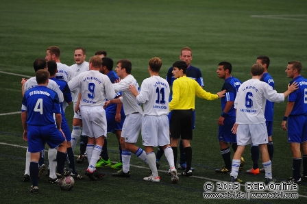 Im zweiten Hälfte sahen die Fans dann eine ähnlich müde Partie wie im ersten Durchgang, die aber wenn auch nicht aus spielerischer Sicht, dann aber ob der Spannung und dem Derbycharakter etwas zu bieten hatten. Nach 57 Minuten war es der eingewechselte Michael Pulver, der den schönsten Angriff der Partie zur 1:0-SC-Führung einnetzen konnte. Pulver hätte wenige Minuten später sogar für das 2:0 sorgen können, verfehlte aber knapp. Die Partie wurde nun immer nervöser und war längst nicht mehr schön anzusehen. Beide Teams streuten viele Fehler ein und so kam es kaum zu gut vorgetragenen Spielzügen. Nach 70 Minuten dann der Knackpunkt der Partie: Ein Nachtreten gegen Yannik Moschel, ein Rempler zurück und Rudelbildung sorgen dafür, dass der Unparteiische Marco Niebergall aus Homburg mit Yannik Moschel, Gökhan Cicekci und Özhan Cicekci gleich drei Akteure mit Rot des Feldes verwies. Auch mit mehr Raum war die Partie geprägt von Unzulänglichkeiten und vor allem der SC wirkte nervös: SC-Keeper Bastian spiele einen Fehlpass der unbestraft blieb, ehe Niederländer und Bastian mit einer kuriosen Rückpass-Aktion fast für den SVB-Ausgleich gesorgte hätten. Zuvor war mit Torsten Kühnreich auch der dritte Gästeakteur nach 81 Minuten des Feldes verwiesen worden. Auch mit doppelter Überzahl agierten die Hausherren nervös und brachten am Ende die knappe Führung über die Zeit.