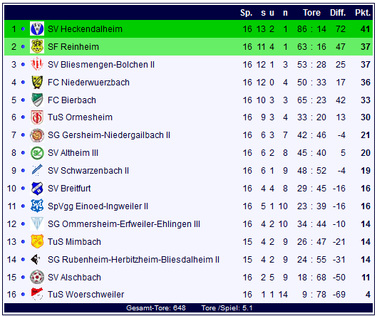 Damit ist der Nachholspieltag komplett, der SV Bliesmengen-Bolchen II schiebt sich in der Tabelle weiter nach vorne, Heckendalheim ist kampflos Herbst- und Wintermeister:
