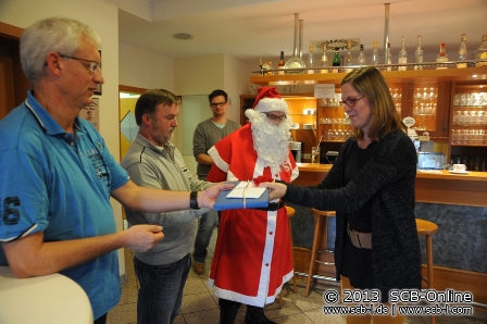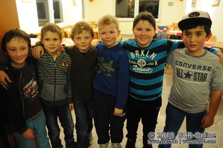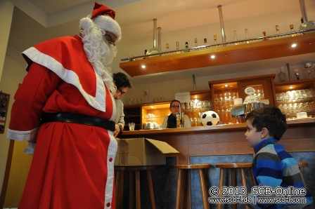 Richtig rund ging es dann am letzten Wochenende vor Weihnachten: Am Freitag, den 20. Dezember 2013 traf sich zum Einen die A-Jugend des SC im Hinnereck zum traditionellen Wutz-Turnier, die B-Jugend hatte mit stolzen 32 Spielern zeitgleich im SC-Sportheim 8 Quadratmeter Pizza und zahlreich Glühwein angerichtet um den Jahresabschluss zu feiern. Und auch am Samstag, den 21. Dezember 2013 war mächtig was los im SC-Sportheim: Ab 14:00 Uhr waren 20 G-Jugendspieler nebst Geschwistern, Eltern und Trainern im SC-Sportheim anwesend und dass auch der Nikolaus bei den Kleinsten nicht fehlen darf hat längst Tradition.