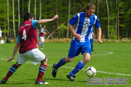 Ein windiges Spiel sahen die rund 120 Fußballfans an diesem Ostermontag in Wolfersheim. Starker Wind sorgte dafür, dass die Fans viele lange Bälle und zwei vollkommen unterschiedliche Halbzeiten zu Gesicht bekamen. Zunächst war es der Gast aus Blieskastel-Lautzkirchen, der nach fünf Minuten durch einen Linksschuss von Spielertrainer Philipp Niederländer aus rund 18 Metern für erste Gefahr sorgte, der Schuss segelte aber übers Tor. In der Folge wirkte die Dreierkette des SC immer wieder indisponiert und so war es grober Schnitzer, der in der zehnten Minute das 1:0 der Hausherren begünstigte: Der SC verlor auf der wackligen linken Seite den Ball, Sören Braun schnappte sich die Kugel und ließ Gästekeeper Meyer keine Abwehrchance. Der SC hatte mit dem Rückstand sichtlich zu kämpfen und so gab es in der Folge zahllose brenzlige Situation im SC-Strafraum, die gefährlichste, als eine Wölfe-Ecke in die Mitte geklärt wurde und der Abschluss das Tor nur knapp verfehlte. Nach 24 Minuten hatte der SC erneut die Defensivordnung aufgegeben, als ein langer Ball bei Nico Welker erreichte, der die Überreste der SC-Defensive nebst Keeper Meyer gekonnt umkurvte und zum 2:0 einschob. Der SC fand in der ersten Halbzeit nie ins Spiel und immer wieder schien man besonders auf den Außen verwundbar. So zwang man sich nach 25 Minuten durch einen weiteren Stellungsfehler zu einem Foul an der Außenlinie, der als Flanke getarnte Freistoß von Patrick Götz segelte in den Winkel des SC-Tores zum 3:0. In der Folge hatte der SC Glück, dass Nico Welker einen Flugkopfball am Tor vorbeisetzte, ehe Johannes Brengel auf der Gegenseite den Außenpfosten traf und damit eines der wenigen offensiven Lebenszeichen des SC setzte. In der Schlussminute bewahrte SC-Keeper Meyer die Gäste mit einer Glanztat gegen Thorsten Müller sogar vor dem 0:4.