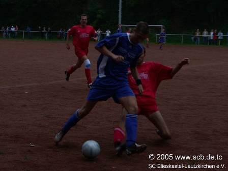 >> hier gibt es den kompletten Spielbericht vom Lokalderby). Es war aber keineswegs ein Spaziergang für den SCB, Alschbach stand gut und hielt vor allem kämpferisch dagegen. Viele harte Zweikämpfe prägte die Partie die vor allem in der ersten Hälfte wenig Höhepunkte zu bieten hatte. Die Härte mit der vor allem der Gastgeber zu Werke ging manifestierte sich auch im Platzverweis für den SVA 15 Minuten vor dem Ende.