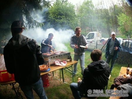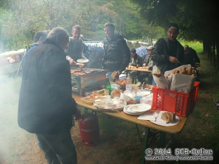 Es wurde gegrillt und auch ein Lagerfeuert hatten die Scler vorbereitet. Das immer schlechter werdende Wetter tat der guten Stimmung bei den SC-Wanderer keinen Abbruch und so hielt man sich bis 16:00 Uhr am Grillplatz in Latzkirchen auf, ehe man den Rückweg in Richtung Sportanlage auf sich nahm.