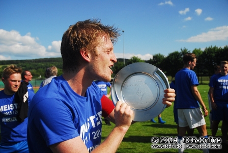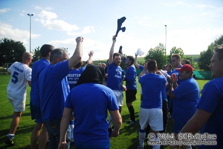Der Rest war Jubel in blau-weiß: Der SVH bejubelte den Titel und die Meisterschale wurde von Klassenleiter Karlheinz Martin auf dem Reinheimer Rasen überreicht. Der Jubel beim Meister war riesig, hatte man doch beim größten Konkurrenten eine großartige Saison gekrönt!