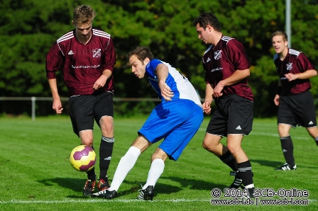 In Blickweiler sahen rund 350 Fußballfans beim Derby den deutlich besseren Start der Hausherren, die nach acht Minuten die erste Strafraumszene der Partie vorzuweisen hatten, als Mathias Meyer in höchster Not retten konnte. Nach 12 Minuten dann die SVB-Führung, als SC-Keeper Custic und die versammelte SC-Defensive nicht richtig klären können und sich Gökhan Cicekci mit der SVB-Führung bedankte. Der SVB war schon jetzt das deutlich aktivere Team, die Niederländer-Truppe wirkte in dieser Phase konzeptlos und versuchte ihr Heil in der Offensive nur mit längen Bällen, die aber nur selten einen Abnehmer fanden. Der SV Blickweiler streute weiter Salz in die Wunden des SC: Patrick Meyer war über rechts nicht zu halten und drosch das Leder gegen den chancenlosen Custic zum 2:0 ins Tor. Der SC kam erst nach 28 Minuten zum ersten Torschuss, als Moschel mit einem Weitschuss nur die Latte traf. Der Alutreffer verlieh dem SC Flügel und so kamen die bis dahin vollkommen harmlosen Gäste besser in die Partie und bekamen einen Elfmeter zugesprochen. Dass SVB-Keeper Becker mit dem Welker-Elfmeter aber wenig Probleme hatte, passte zum bisherigen Spiel. Dennoch war es Christian Kempf, der den SC in der 34. Minute zum schmeichelhaften Anschlusstreffer brachte, auf der Gegenseite war es aber erneut Patrick Meyer, der in der 41. Minute den alten Abstand wieder herstellte und die verdiente Pausenführung für die Hausherren heraus schoss.