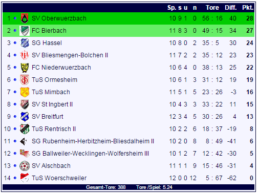 In der Tabelle der Kreisliga A Bliestal bleibt der SV Oberwürzbach damit an der Spitze, die SG Hassel muss etwas abreißen lassen und steht nur noch auf Tabellenplatz drei: