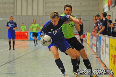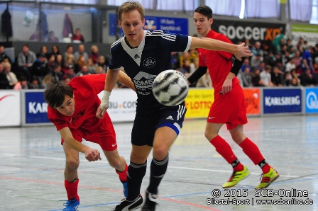 Im kleinen Finale machte der SV Blickweiler mit der SG Gersheim-Niedergailbach kurzen Prozess und sicherte sich mit einem 6:0-Erfolg Rang drei. Im Finale war es dann SC-Spielertrainer Philipp Niederländer der zum ersten Mal ins Schwarze traf, ehe auf der anderen Seite Max Schaar einnetzte. Vor allem der SC begann nun zu taktieren und zog damit den Unmut der Fans in der Halle auf sich, wurde aber belohnt: Keeper Edin Custic war es dann, der den wachsenden Druck des Titelverteidigers abprallen ließ und dafür sorgte, dass das Finale ins Siebenmeterschießen ging. Vom Siebenmeterpunkt hatte der SC die besseren Nerven und gewann am Ende mit 5:4.