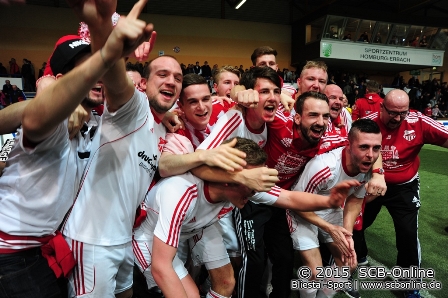 Damit stand der Sieger des Masters 2015 also fest: Die hunderten mitgereisten Fans des FV Diefflen konnten den Titel bejubeln und taten dies lautstark bis lange nach dem Abpfiff. Mit Diefflen gewann das überragende Team der Hallenrunde das Masters-Finale: Der Rekord von 200 Punkten in der Qualifikation sagt alles über dieses Team aus, dass am Ende auch das große Finale verdient gewinnen konnte. Dass Chris Haase vom FVD zum Spieler des Turniers gewählt wurde passt ins Bild einer perfekten Hallensaison für den FVD, der am Ende vor 3.400 Fußballfans in Erbach den Pott in die Höhe strecken darf.
