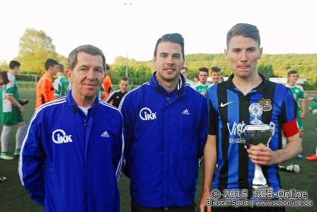 Damit kommt der Saarlandpokalsieger 2015 der B-Jugend vom 1. FC Saarbrücken – HERZLICHEN GLÜCKWUNSCH. 350 Fußballfans boten einen tollen Rahmen für ein Finale das früh zu Gunsten des FCS vorentschieden war, am Ende zeigte aber Homburg über weite Strecken eine kämpferisch gute Leistung und wird sich am Ende über die beiden frühen Gegentore ärgern, sorgten diese doch früh den Bruch im FCH-Spiel. Die Fans freuten sich über ein tolles Endspiel zweier starker B-Jugenden mit einem am Ende verdienten Sieger aus Saarbrücken, dem der Kreisjugendleiter Nordsaar Udo Marmitt zusammen mit den Vertretern der IKK den IKK-Saarlandpokal überreichen durfte. Marmitt dankte auch dem Veranstalter des SC Blieskastel-Lautzkirchen, der das Finale sehenswert in Szene setze.