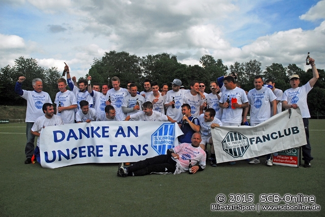 Die Partie war nun entschieden. In der 84. Minute legte Bildstock das 5:0 nach und leitete die Feierlichkeiten an der Seitenlinie ein. Mit dem Abpfiff durch Schiedsrichter Thomas Knoll entfachte ein Jubelsturm des SV, der aber jäh unterbrochen wurde, als Knoll dem Hellas-Keeper nach dem Abpfiff die Rote Karte zeigte, weil dieser wohl aus rund 40 Metern den Ball in Richtung Knoll geschossen hatte. Eine seltsame Posse, der aber den Jubel nur kurz stoppte.