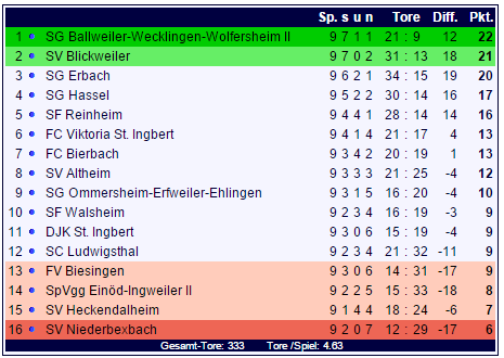 In der Bezirksliga Homburg war die SG Erbach mächtig in Torlaune, die Spitzenposition kann aber die SG Ballweiler-Wecklingen-Wolfersheim II verteidigen...